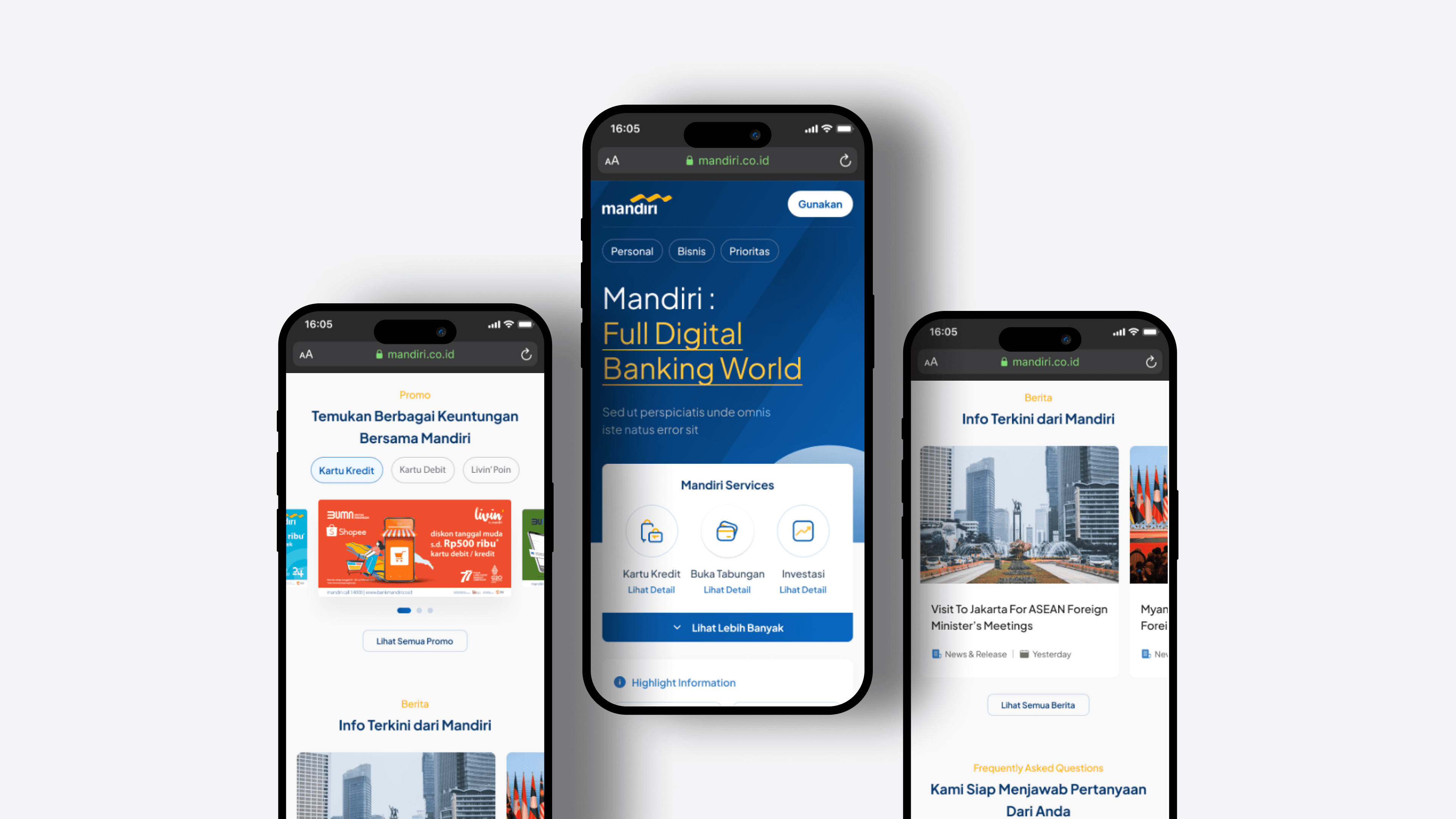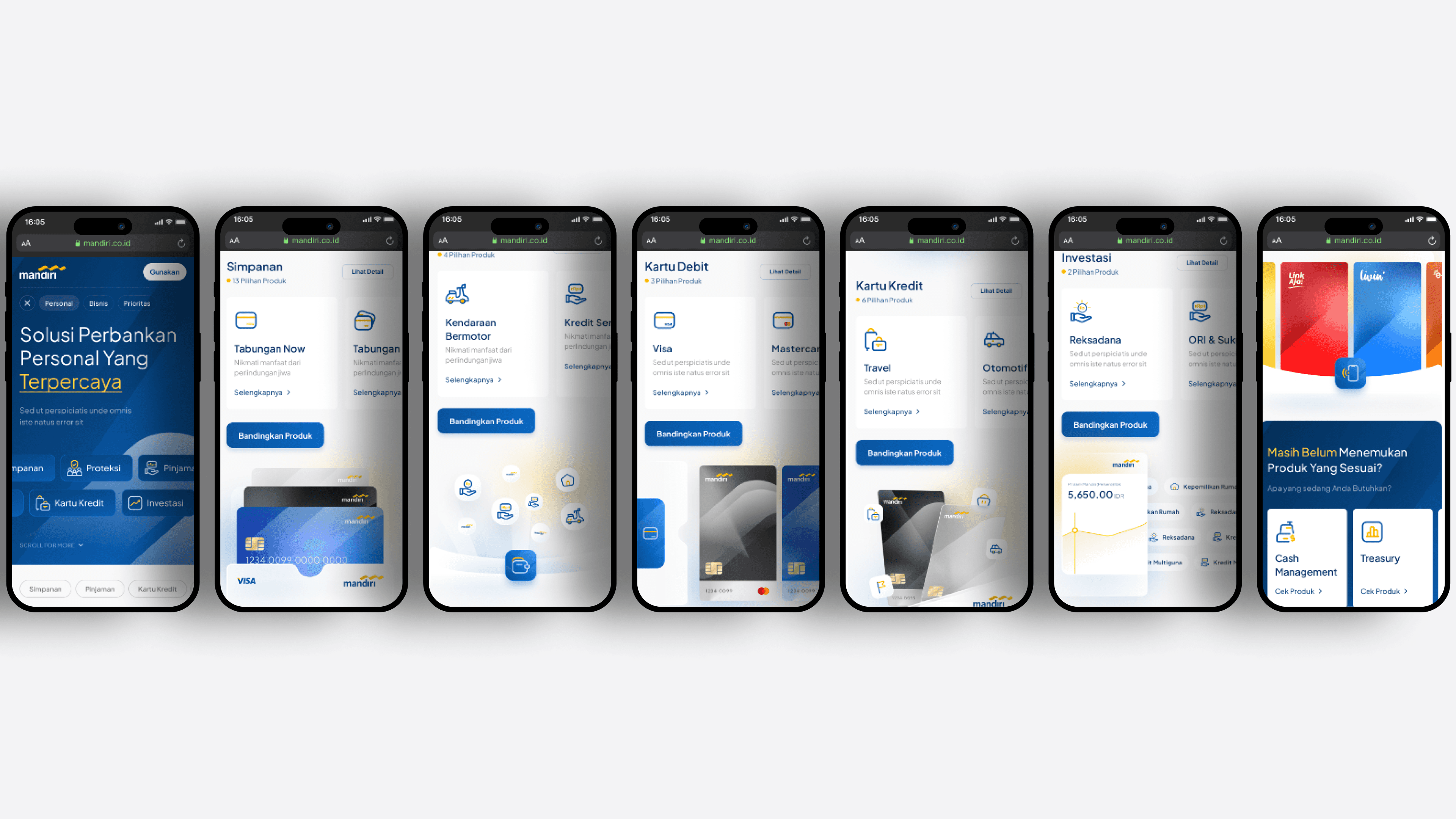The Bank Mandiri product showcase website is an interactive platform designed to highlight the bank's cards and banking facilities. Key features include: