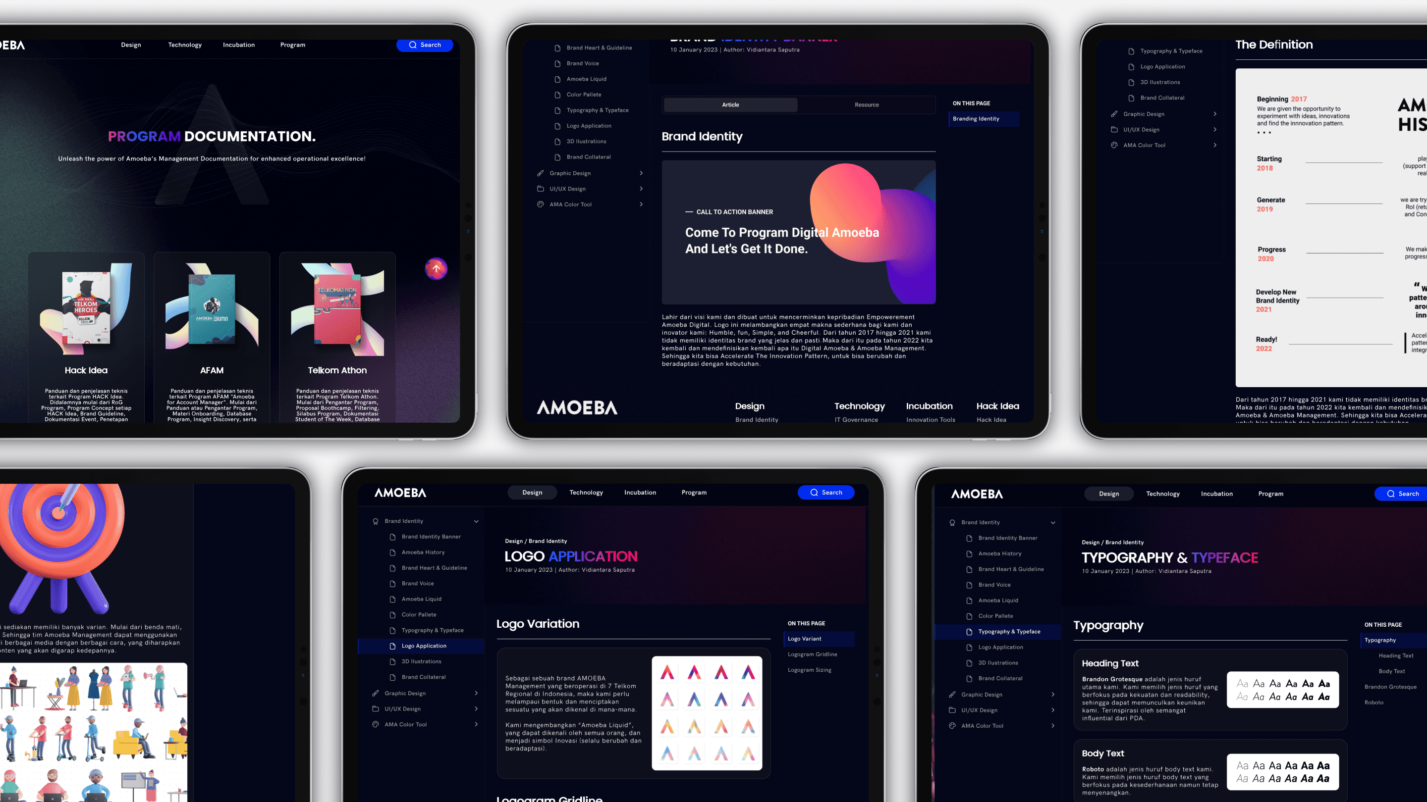 Landing Page Design: I put special emphasis on redesigning the landing page to serve as a powerful brand statement. This involved creating engaging visuals and content layouts that immediately communicated Digital Amoeba's identity and the purpose of the documentation site.