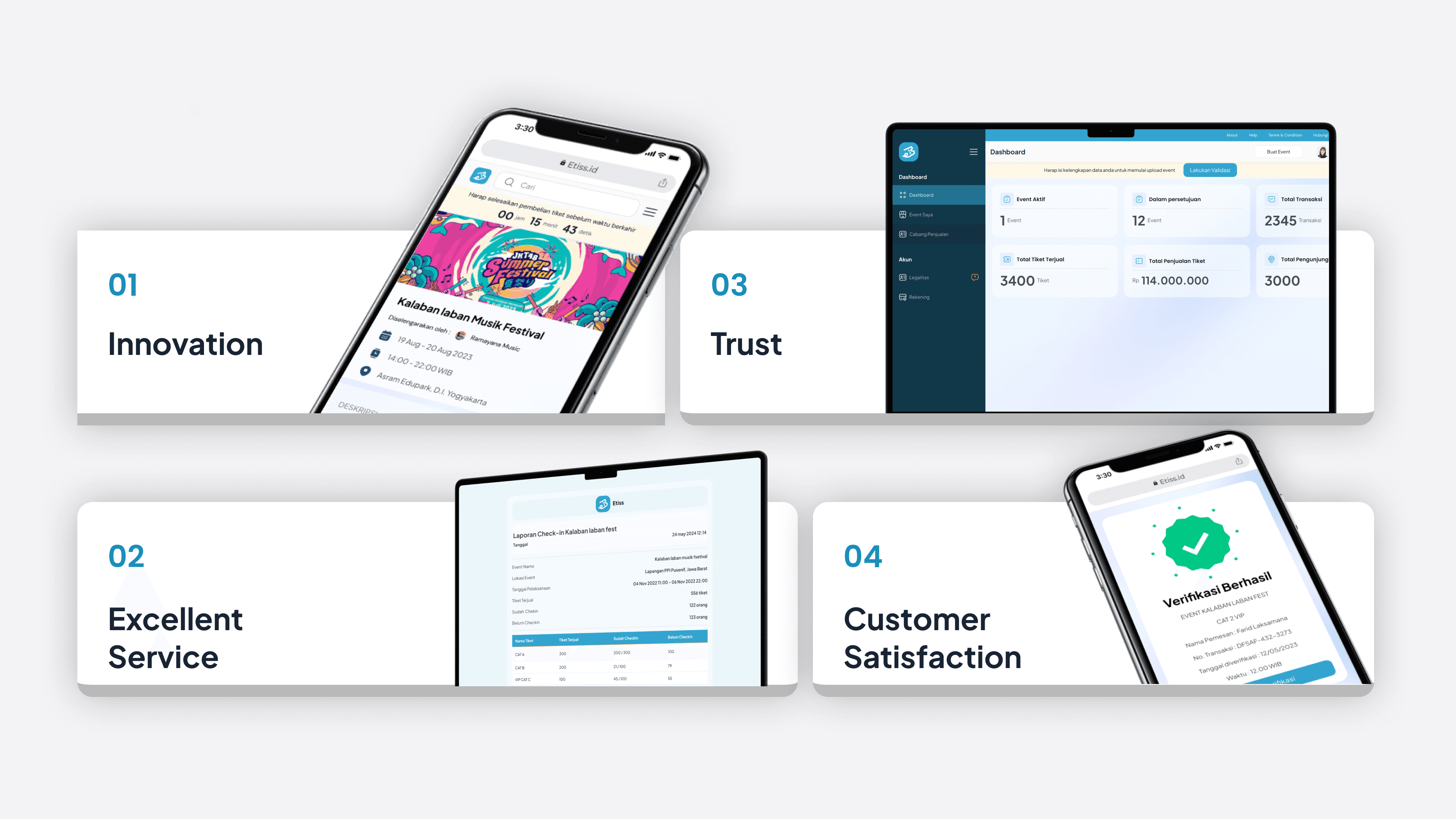 In developing Etiss, we used a Design Thinking approach that placed users at the heart of the process. We began by deeply understanding the problems faced by local event organizers. Through a series of in-depth interviews, user surveys, and usage data analysis, we gained a clear picture of the challenges at hand.