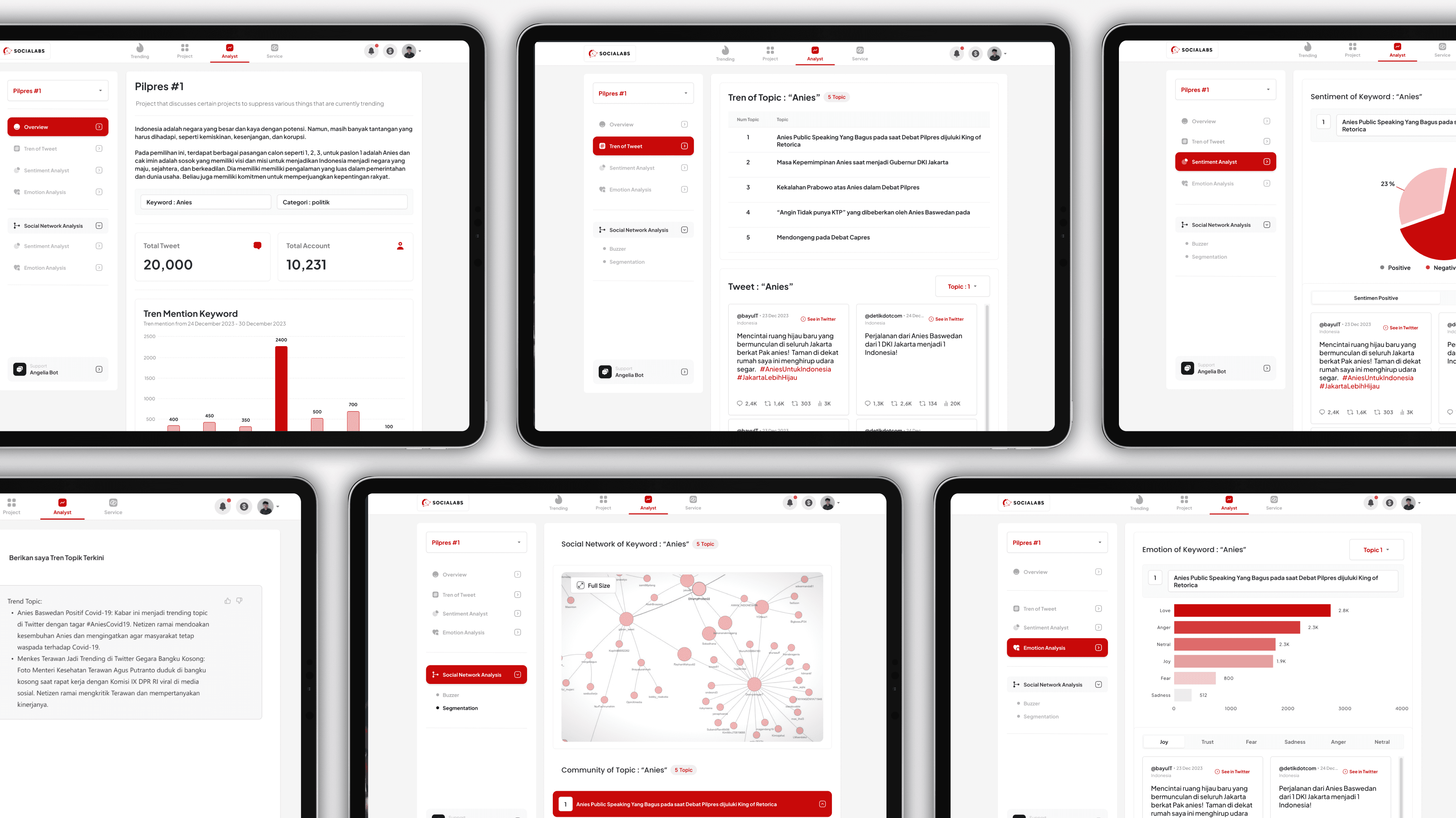 UI/UX Design for Data Visualization: I developed wireframes and prototypes for our data visualization tools, focusing on making complex data easily understandable. This included designing interactive dashboards for topic modeling, sentiment analysis, and SNA results.
