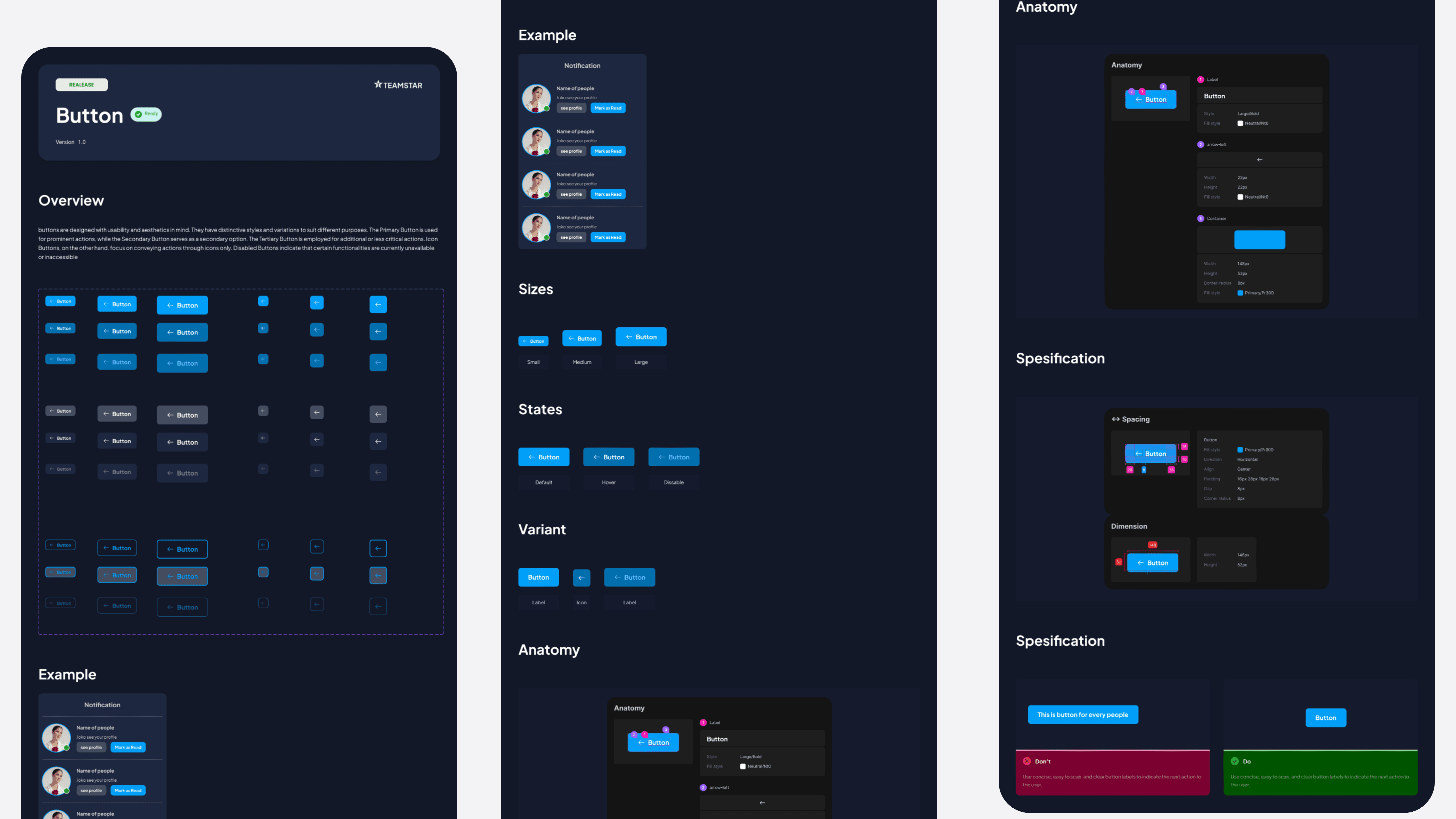 Our process began with a UI Audit, where we mapped out all design components used across Teamstar. We identified significant inconsistencies, particularly in areas like button styles, input fields, and spacing. These inconsistencies were leading to longer development times, as developers had to implement different versions of the same element.